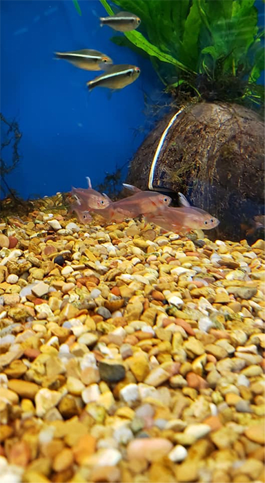 Not just a great place for bacteria to grow, substrates may also help reduce stress. Substrate provides aquatic life a sense of orientation. It prevents the bottom from creating a mirror-like base in which the fish sees a reflection of itself and others. Additionally, there are also species of fish and invertebrates that enjoy foraging and borrowing into the substrate, some even make a cozy bed under it at night.