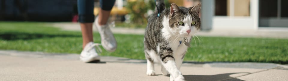 The more your cat gets used to and comfortable with being on a leash, the longer your walks can be. Just always remember that your cat is not a natural part of the ecosystem where you live. “Letting your cat free roam, especially unsupervised, can be harmful to not just the plants and animals around you, but to your cat, as well,” said Durst. “Always abide by local leash laws, and make sure to keep a watchful eye on your pet.”